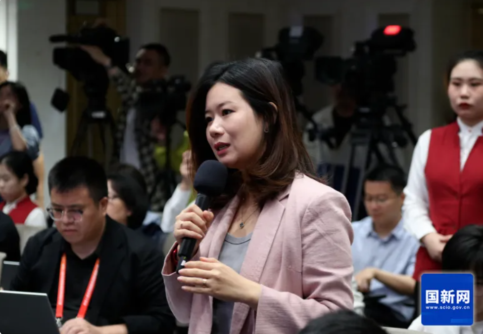 美国国际市场新闻社记者提问(赵一帆 摄)